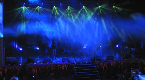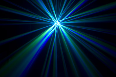 L'effetto risultante è mostrato nelle foto e nel video ed è di grandissimo effetto! L'effetto è reso maggiormente se si utilizza una macchina del fumo. In tal modo si vedono tutti i raggi colorati che si muovono a tempo di musica.